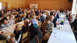 Herkullisen täytekakkukahvituksen jälkeen katseltiin Pekka Viitaniemen tekemä esitys ”Aikamatka vuoteen 1958” ja Pekan esityksen jälkeen esiintyi Pete Poskiparta, joka viihdytti juhlaväkeä mielenkiintoisilla esityksillään.