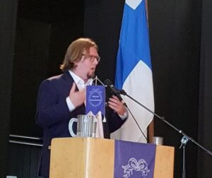 Juhlapuheen piti sukumme jäsen, toimitusjohtaja Jorma Jokela, joka oli saapunut juhlaan suoraan kotoaan Sveitsistä. Jokela kertoi oman tarinansa yrittäjyyden aloittamisesta, hän oli jo 16 vuotiaana perustanut                  ensimmäisen yrityksensä Kuopiossa,  aloitaessaan polkupyörälähettinä. Nyt hän 38 vuotiaana on yrityskonsernin toimitusjohtaja ja pääomistaja, joka toimii 25 maassa ja työllistää yli 1000 henkilöä. Hänen viestinsä nuorille oli ”olkaa rohkeita ja ennakkoluulottomia, luottakaa itseenne ja yrittäkää”  Yrittämisessä tulee aina vastoin käymisiä mutta lopulta toiveenne toteutuu.